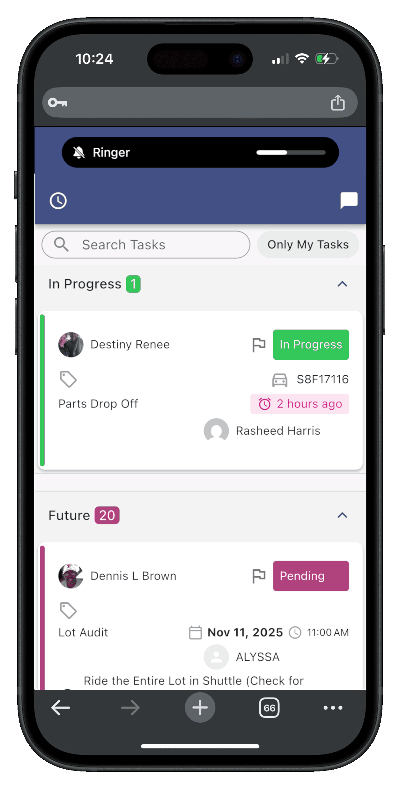 Dealer Dispatch connects your entire service operation—advisors, porters, drivers, and management—on one simple web and mobile platform. Tasks are created, tracked, and completed in real time, so every team member knows what’s happening and what’s next.